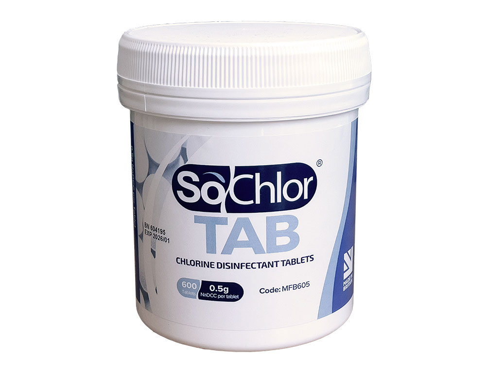 SoChlor™ TAB chlorine release tablets (Sodium Dichloroisocyanurate / Troclosene Sodium) are used to deliver the correct and exact strength chlorine solutions for disinfection of blood spills and surfaces in high risk areas. Because the chlorine based solution is made up on-the-spot as required there are no transportation, storage or contamination issues normally associated with hazardous and naturally unstable hypochlorite solutions. Chlorine tablets are stable, compact and easy to store for longer periods until required.