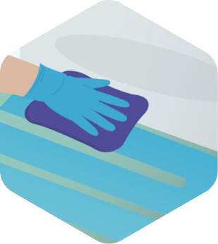 Wipe down all surfaces. Apply the solution to surface and leave to dry