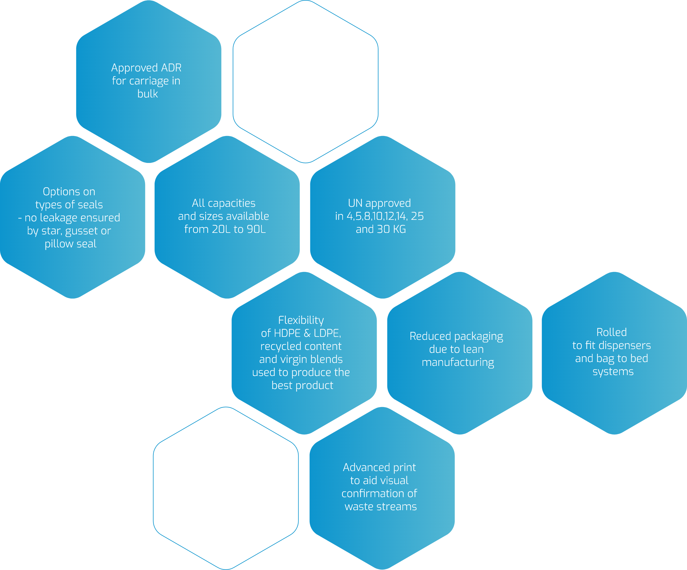Trusted around the world by hospitals, including NHS Trusts, private medical care facilities, nursing homes and dental practices as well as specialist waste collection companies, our yellow clinical bags protect staff, patients and the public from harmful waste. Click here to earn more about waste streams.